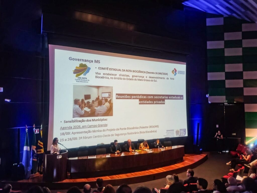 Durante sua apresentação, a assessora da Semadesc destacou o papel estratégico de Mato Grosso do Sul na consolidação do corredor, ressaltando as ações coordenadas pelo Governo do Estado para estruturar a governança regional, avançar em projetos de infraestrutura e promover a integração econômica entre Brasil, Paraguai, Argentina e Chile. Ela também apresentou iniciativas relacionadas ao Plano Mestre de Integração e Desenvolvimento do Corredor Bioceânico, instrumento de planejamento regional financiado pelo Banco Interamericano de Desenvolvimento (BID), que reúne diagnósticos e planos de ação voltados à facilitação do comércio, melhoria da infraestrutura física e digital e estímulo ao desenvolvimento produtivo local.